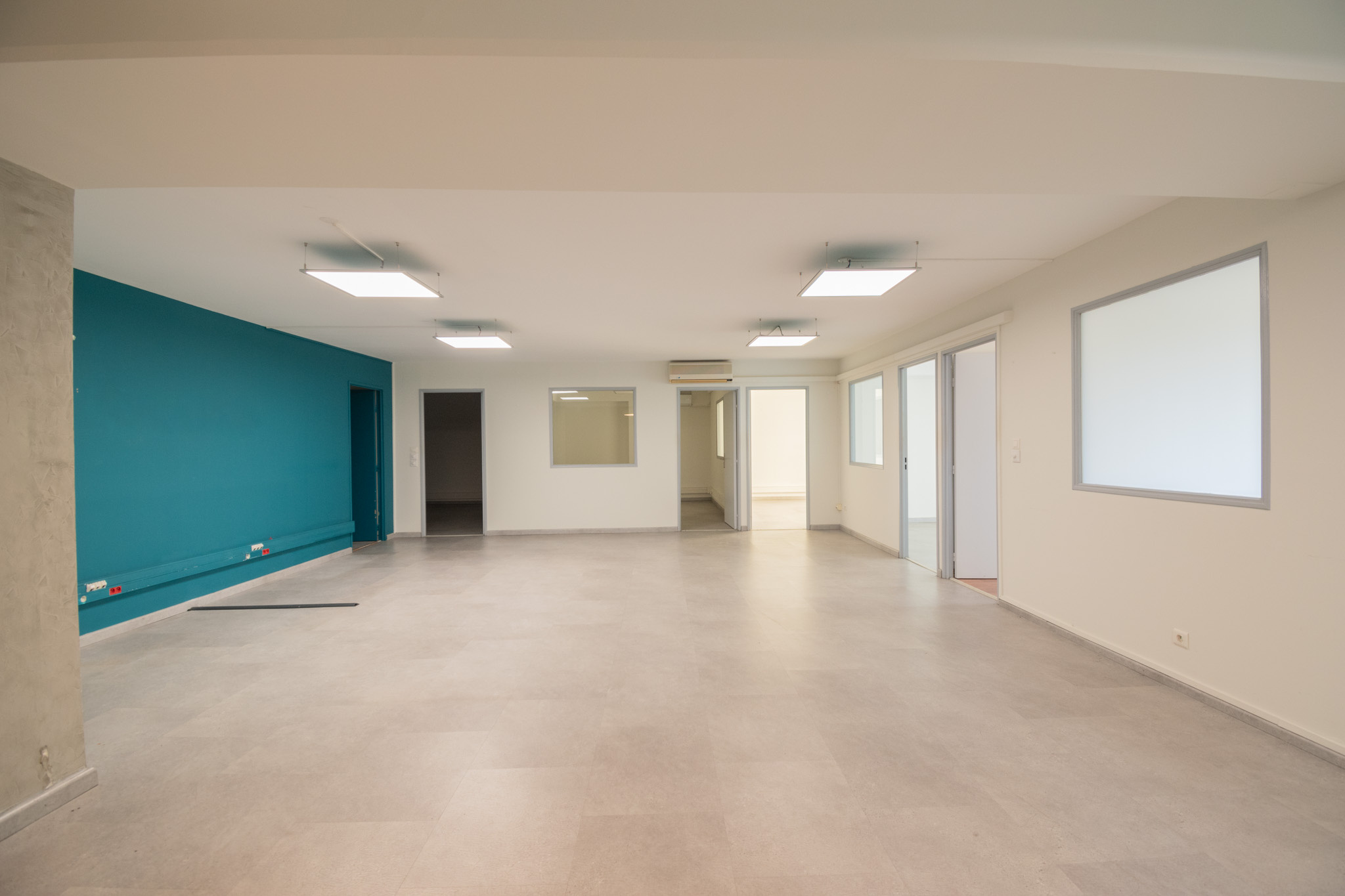 - Espace prêt à l'emploi : 10 bureaux fermés + un vaste espace accueil/showroom.